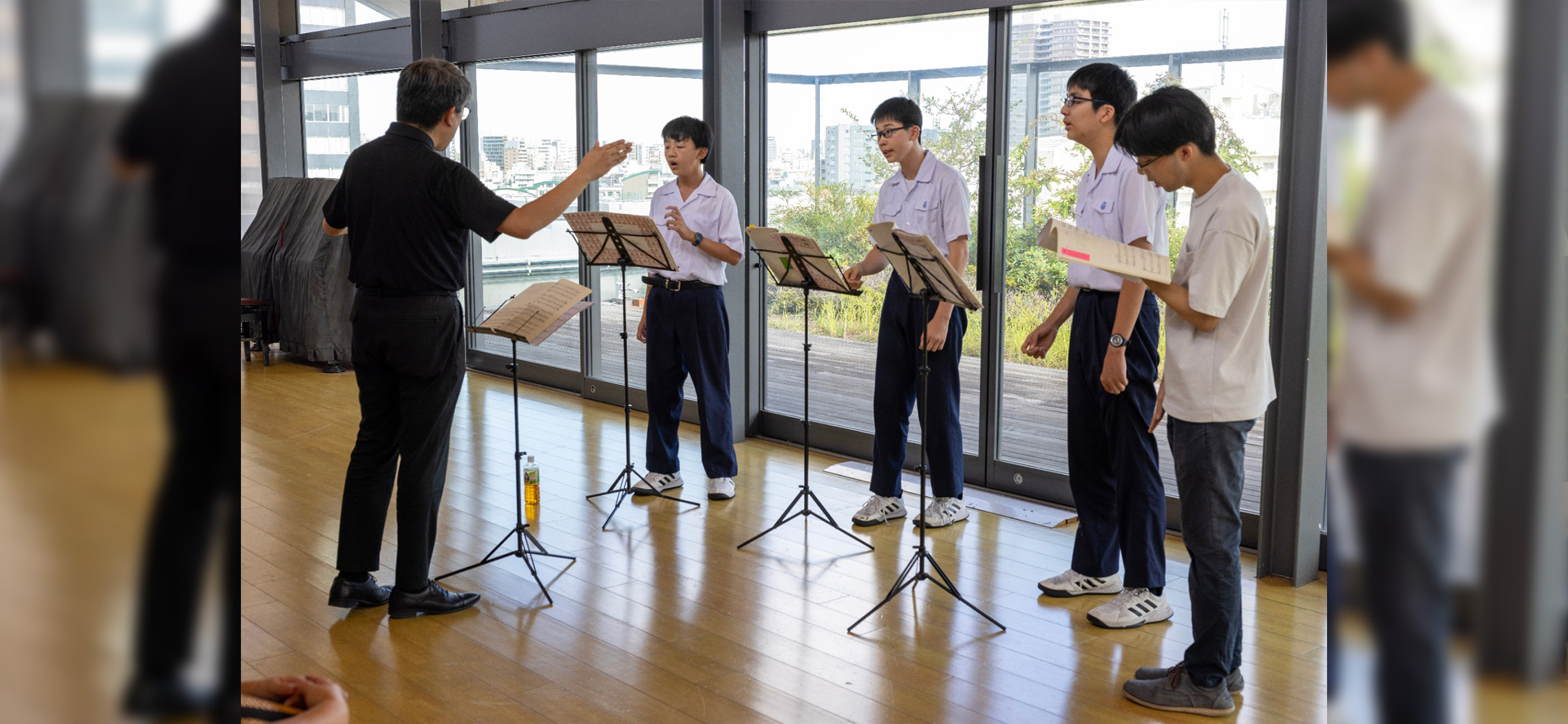 男声合唱曲を楽しみながら歌っています。