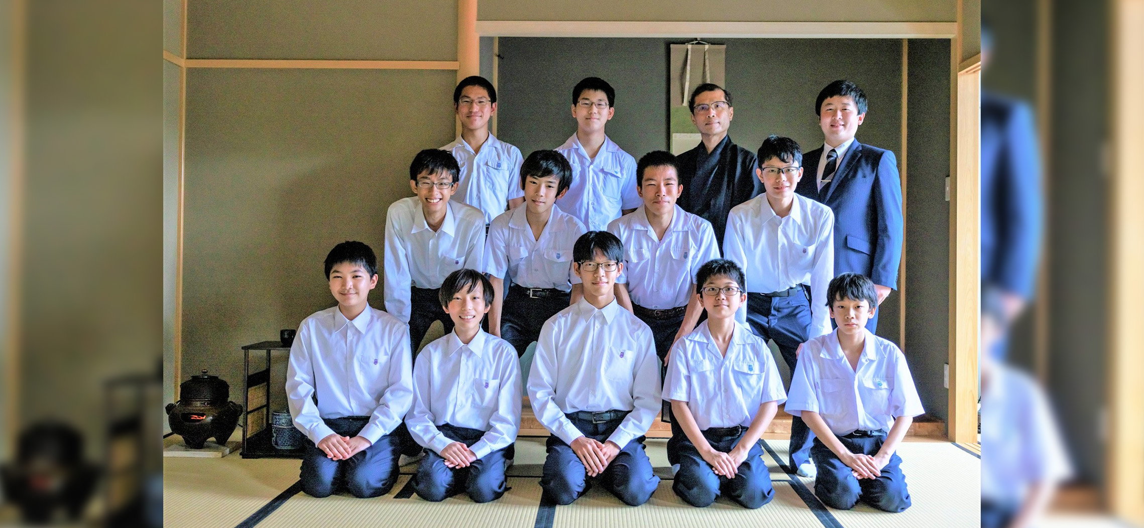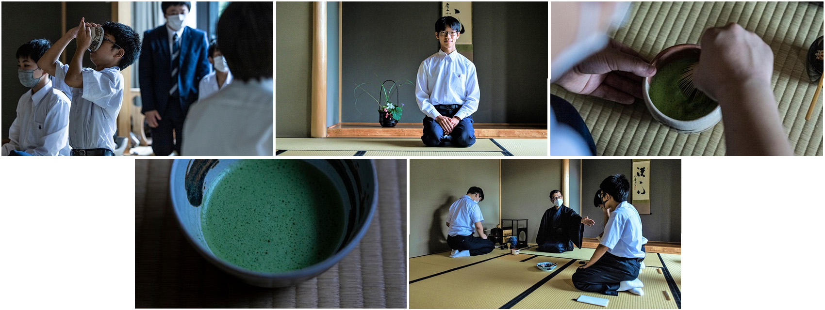 都内男子校では唯一の茶道部です。年頃の男の子たちが茶道? と思われるかもしれませんが、日々の勉強や運動系部活動とはまた違った時間が流れる茶室での稽古は、精神を集中し一つ一つの所作を丁寧に行うことで、立ち居振る舞いの美しさや礼儀、集中力を養います。